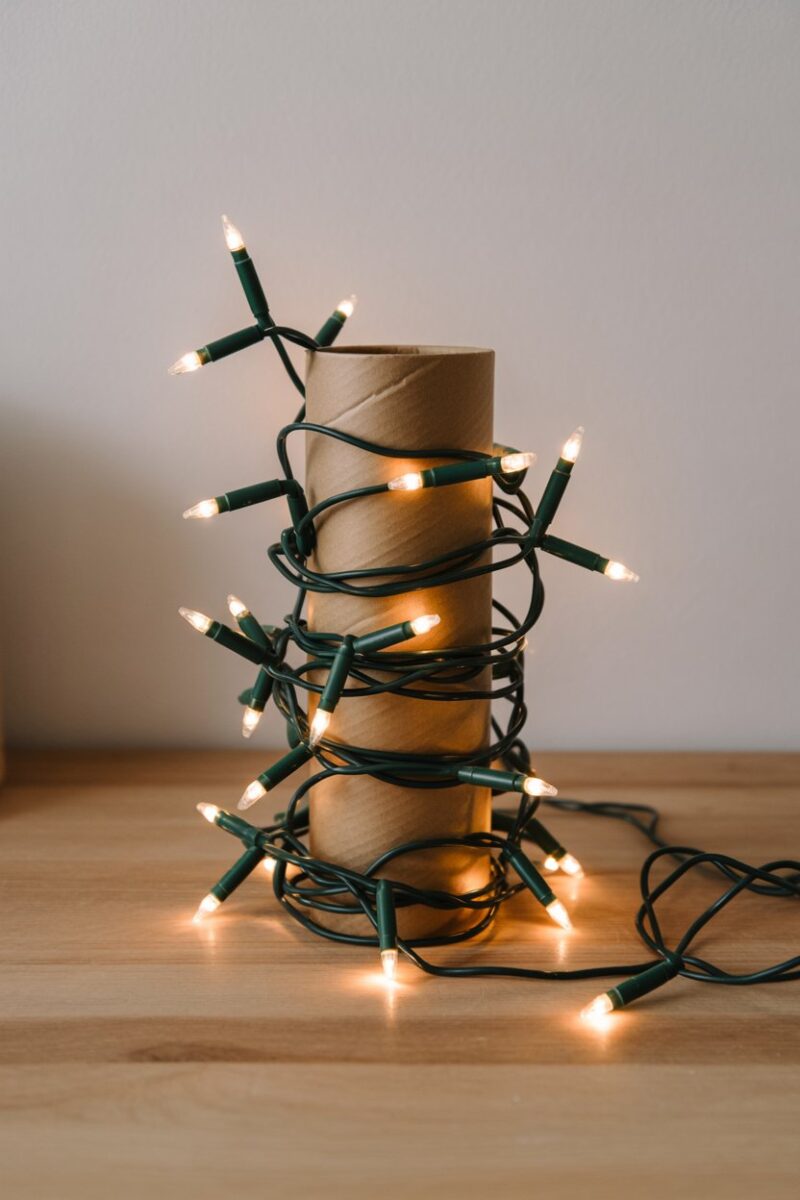 Keeping your Christmas lights tangle-free is easier than you think! Use a simple jar or container to wrap the lights around a cardboard tube or a can. This way, they stay organized and ready for next year without any frustrating knots.