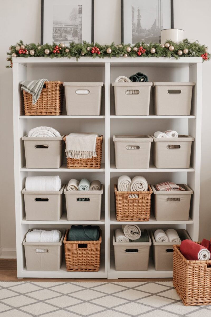 Keeping your holiday linens organized can make decorating a breeze. Use labeled bins to store tablecloths, napkins, and throws, so you can find what you need quickly. Rolling instead of folding can save space and keep everything looking neat!