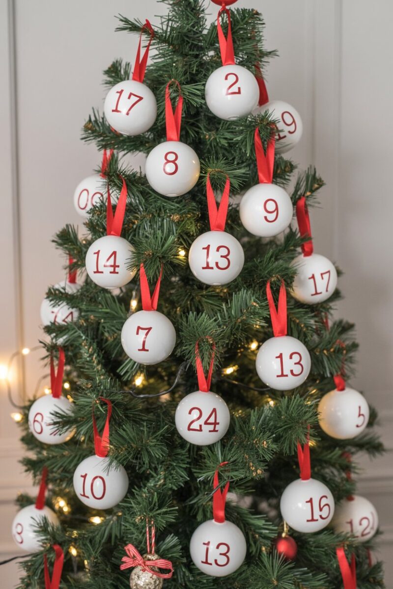 Making your own Advent calendar ornaments is a fun way to count down to Christmas. You can use simple materials like white balls and red ribbons to create a charming look. Each day, hang a new ornament and enjoy the festive spirit!