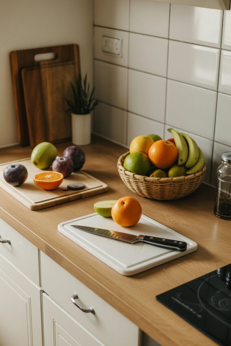 Start your decluttering by clearing off your countertops. Keep only the essentials, like a few cutting boards and your favorite knives. A tidy space makes cooking more enjoyable and stress-free!