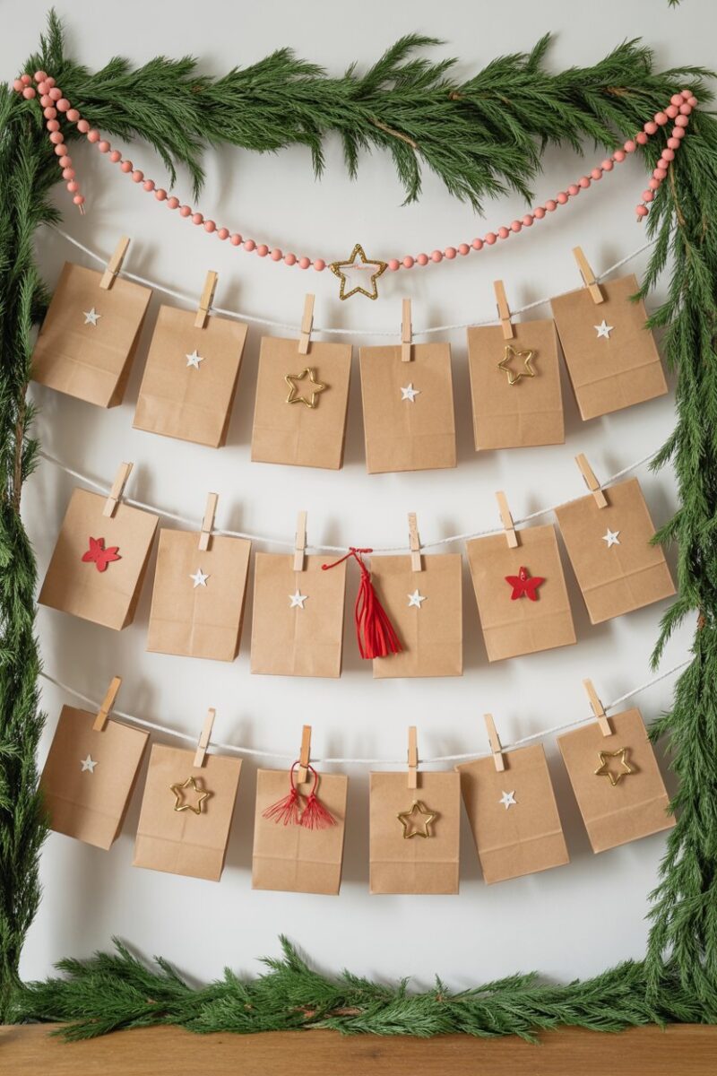 Creating a DIY Advent calendar with brown bags is a fun and simple project for everyone. Just hang the bags on a wall or door, fill them with treats or little surprises, and number them for each day leading up to Christmas. This activity is perfect for kids and busy adults alike, adding a festive touch to your home without taking too much time.