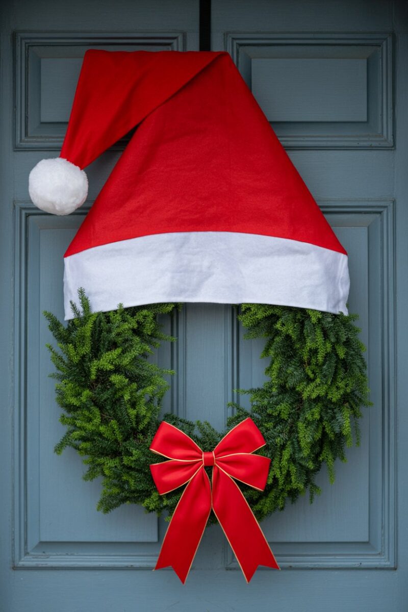 Add a fun twist to your holiday decor with a Santa hat door cover! This cheerful decoration instantly brings a festive vibe to your entrance. Pair it with a classic wreath for a complete holiday look.