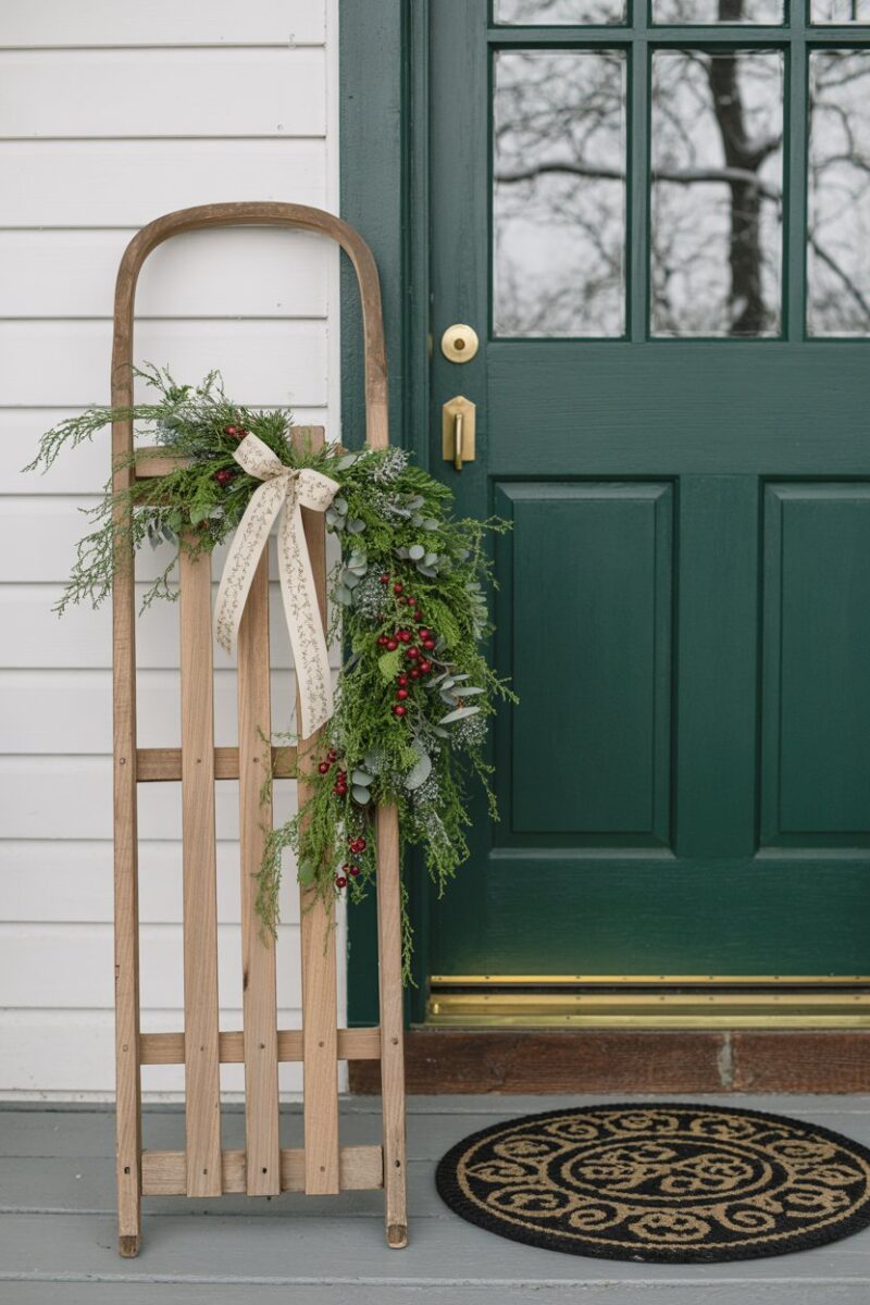 A sled door decoration brings a cozy, festive vibe to your home. You can easily personalize it with greenery, ornaments, and a cute ribbon. This charming touch is sure to welcome your guests with holiday cheer!