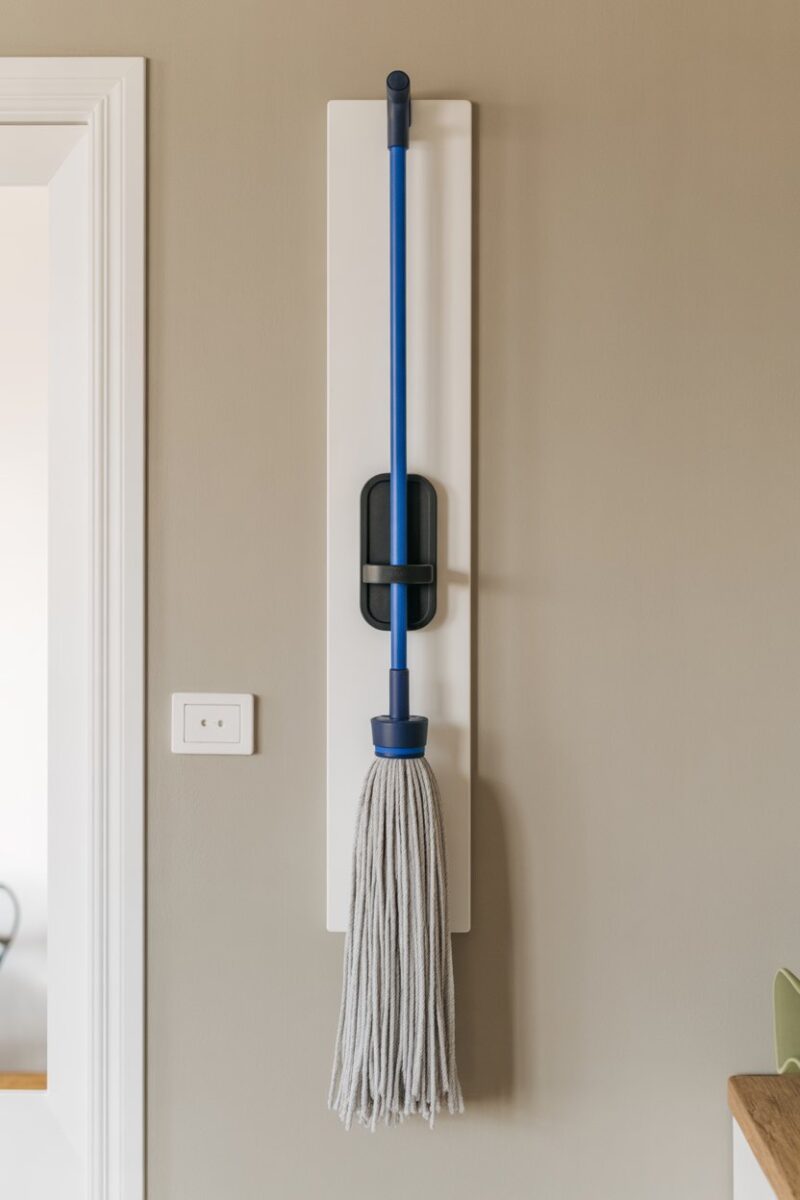 - Wall-Mounted Mop Storage Solutions