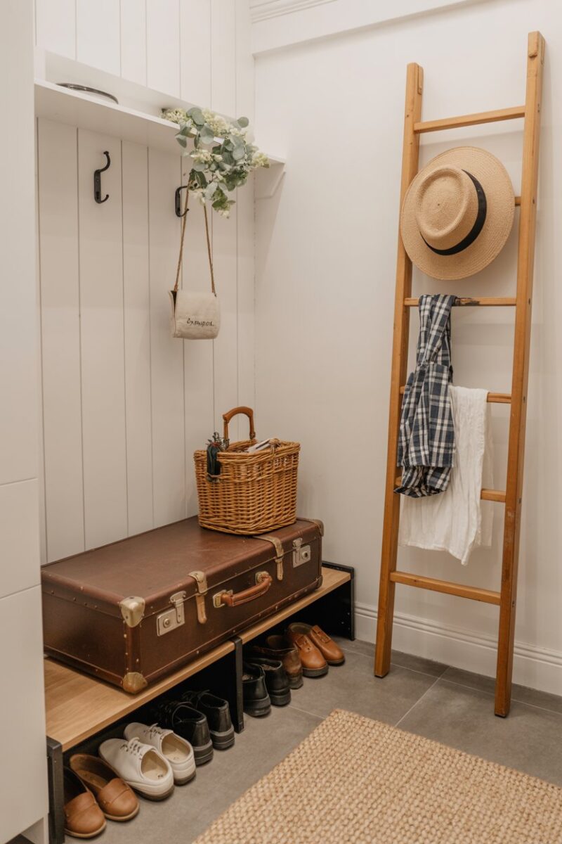 Using repurposed furniture can add charm and functionality to your mudroom. An old suitcase makes a great storage solution for shoes or seasonal items, while a ladder can hold bags and hats. These creative ideas not only save space but also give your entryway a unique touch.