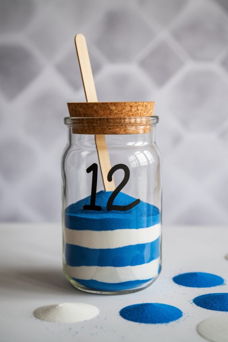 Create a fun countdown clock to ring in the New Year! Use a clear jar filled with colorful sand to mark the hours leading up to midnight. It’s a simple and stylish way to keep track of time while adding a festive touch to your decor.