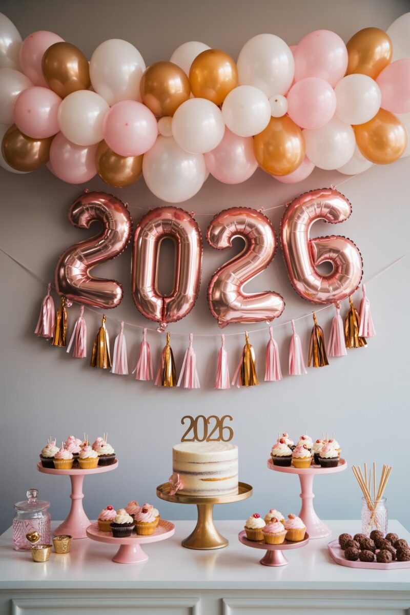 A glittering balloon arch can transform any space into a festive wonderland. Use a mix of gold and silver balloons for a touch of sparkle that catches the eye. This DIY decoration is perfect for welcoming guests and setting a joyful tone for your New Year celebration.