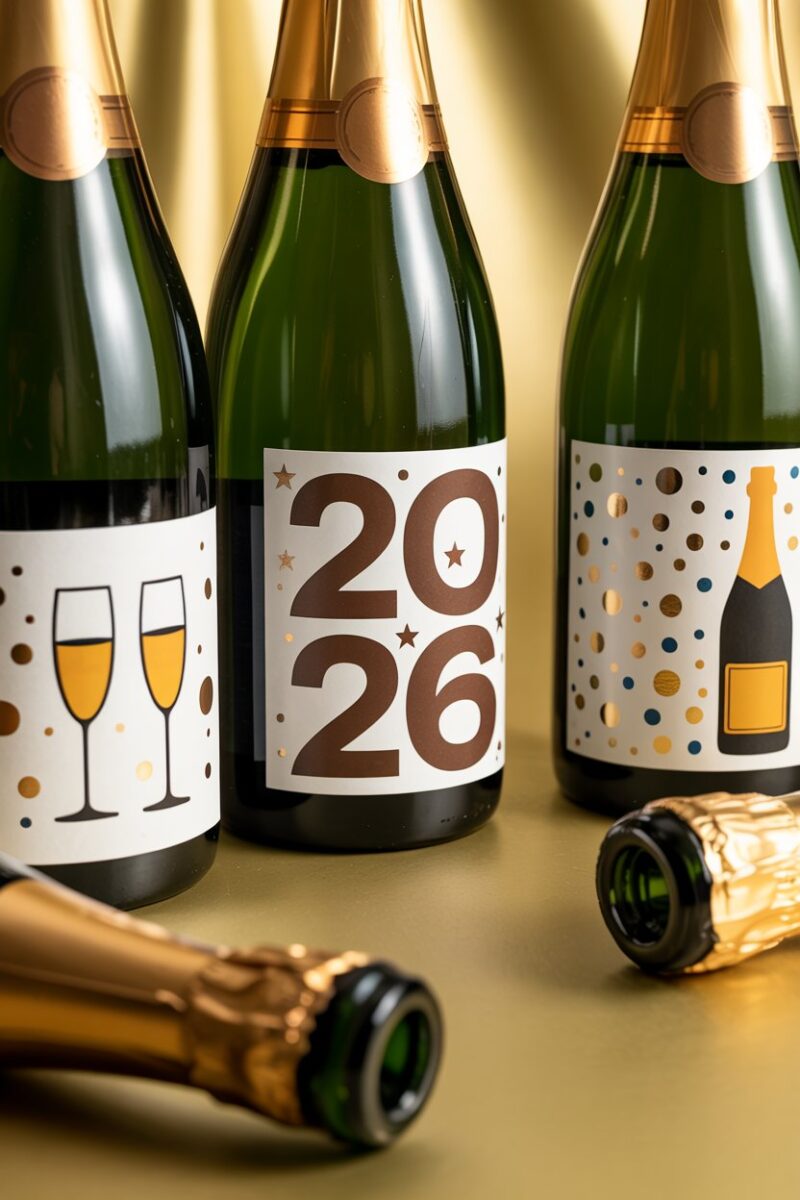 Give your New Year’s celebration a personal touch with DIY sparkling wine bottle labels. You can easily create fun and festive designs that match your party theme. Just print them out, stick them on, and watch your bottles shine!