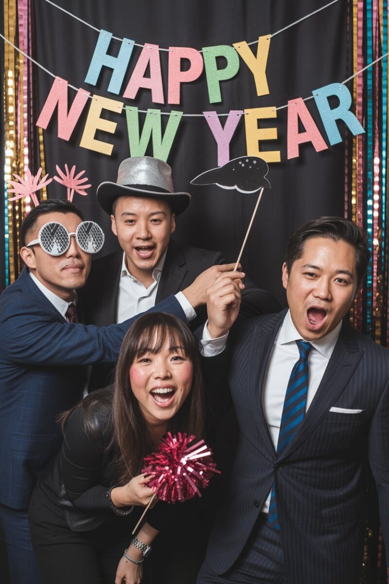 Create a fun and memorable New Year photo booth that everyone will love! Use colorful backdrops, balloons, and props to make it special. This is a great way to capture moments and celebrate the start of a new year with friends and family.