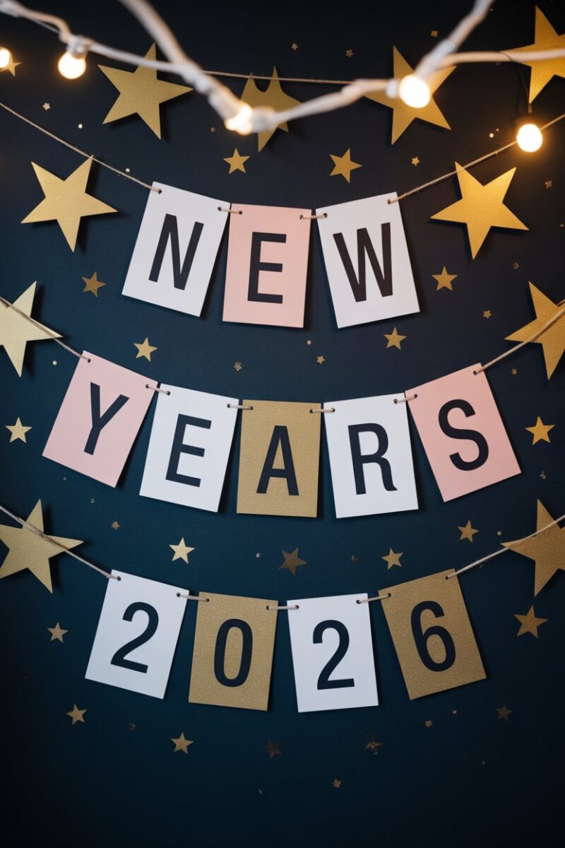 A countdown banner is a fun way to celebrate New Year’s Eve. You can easily make one using colorful paper and markers to create the numbers. Hang it up in your party space to keep everyone excited as the clock ticks down!