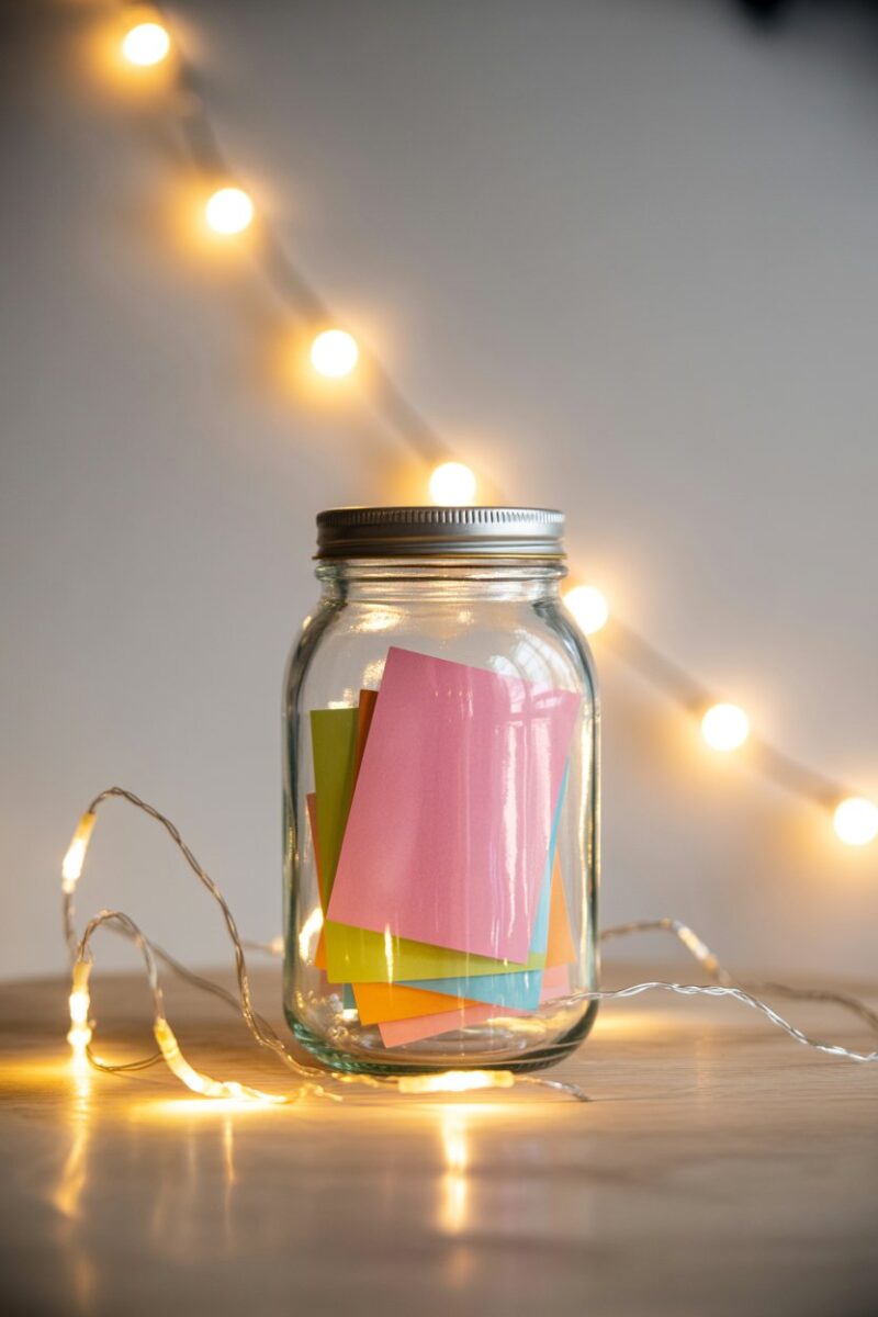 A personalized New Year’s resolution jar is a fun way to keep track of your goals. Fill it with colorful notes that remind you of what you want to achieve this year. Each time you reach a milestone, celebrate by reading a note and reflecting on your progress!