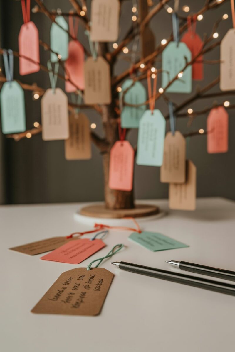 Create a New Year’s Eve Wish Tree to share hopes and dreams for the upcoming year. Gather some branches and colorful paper tags for everyone to write their wishes on. Hang them on the tree and enjoy the positive vibes as you celebrate together!