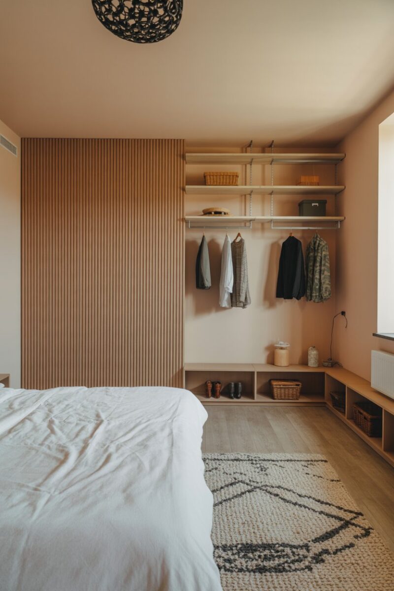 Open shelving is a great way to keep your clothes and shoes visible and easy to grab. You can quickly see what you have, making it simpler to mix and match outfits. Plus, it adds a nice, organized look to your small space!