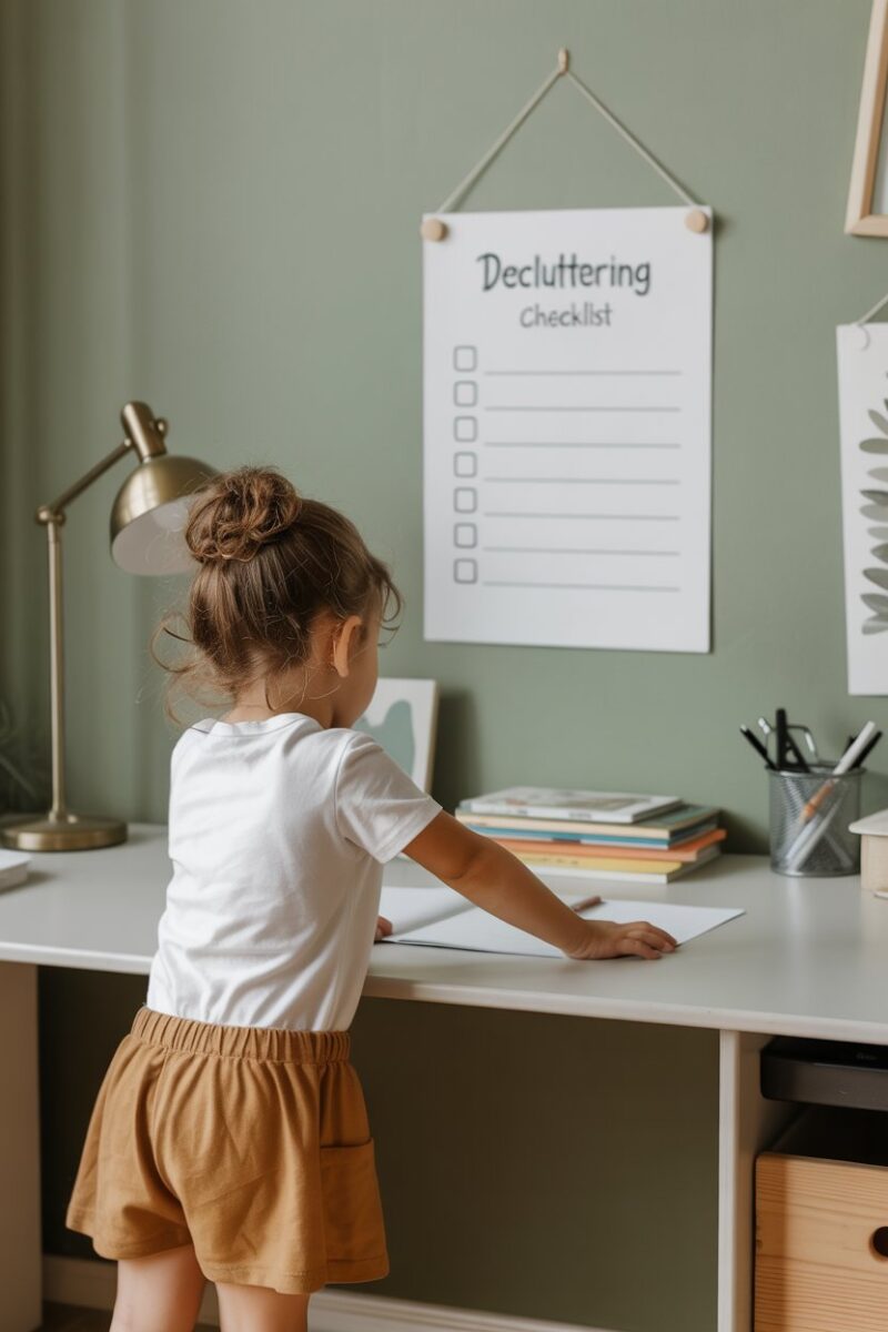 A visual checklist can make decluttering fun for kids. Hang it up where they can see it and let them check off items as they go. This simple method keeps them engaged and motivated to tidy up their space!